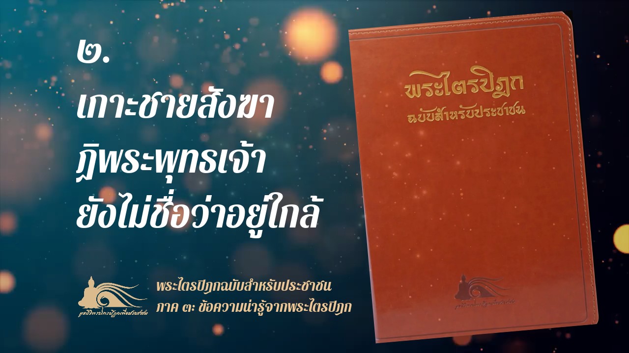 "ดูก่อนภิกษุทั้งหลาย ถ้าแม้ว่าภิกษุจับชายสังฆาฏิตามหลัง ย่างเท้าตามทุกก้าวแต่เธอมีความละโมบ มีความติดใจแรงกล้าในกามทั้งหลาย มีจิตพยาบาท มีความดำริแห่งใจอันเป็นโทษ ลืมสติ ไม่มีสัมปชัญญะ มีจิตไม่ตั้งมั่น มีจิตหมุนไปผิด ไม่สำรวมตา หู จมูกลิ้น กาย ใจ ภิกษุนั้น ก็ยังอยู่ไกลเราโดยแท้ และเราก็อยู่ไกลภิกษุนั้น ข้อนั้นเพราะเหตุไรเพราะภิกษุนั้นไม่เห็นธรรม ผู้ไม่เห็นธรรมย่อมไม่เห็นเรา"